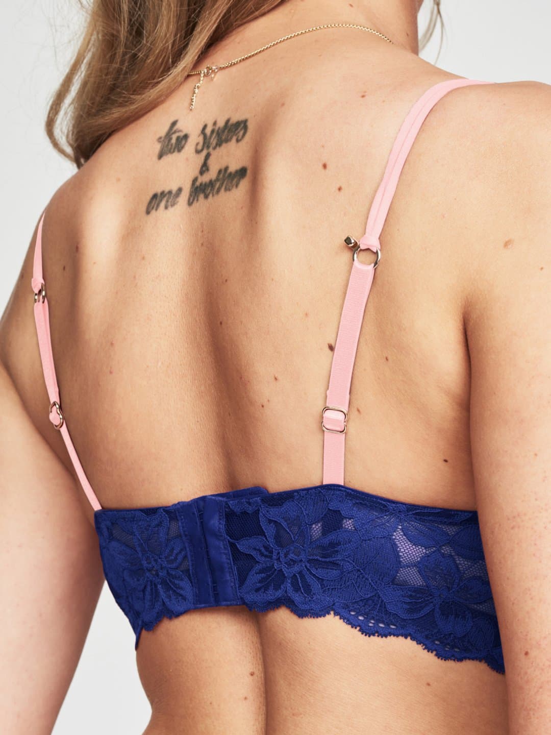 Our bestselling set of balconette and thong in this autumns trendiest color Electric Blue combined with a pretty pink.